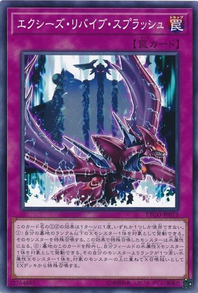 ①:自分の墓地のランク4以下のXモンスター1体を対象として発動できる。そのモンスターを特殊召喚する。この効果で特殊召喚したモンスターは水属性になる。