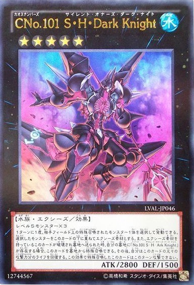 ②:X素材を持っているこのカードが破壊され墓地へ送られた時に発動できる。このカードを特殊召喚する。その後、このカードの元々の攻撃力分だけ自分のLPを回復する。この効果で特殊召喚したこのカードはこのターン攻撃できない。この効果は自分の墓地に「No.101 S・H・Ark Knight」が存在する場合に発動と処理ができる。