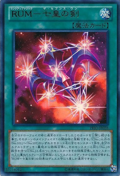 ②:EXデッキから特殊召喚されたモンスターが相手フィールドに存在する場合、墓地のこのカードを除外し、手札から「RUM」魔法カード1枚を墓地へ送って発動できる。この効果は、その魔法カード発動時の効果と同じになる。