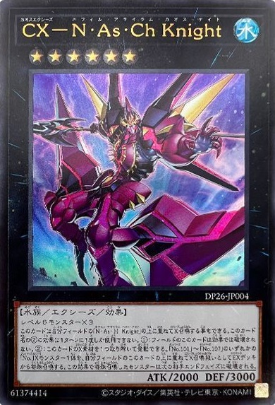 ①:自分のドローフェイズに通常のドローをしたこのカードを公開し続ける事で、そのターンのメインフェイズ1開始時に発動できる。「CNo.」モンスター以外の「No.101」~「No.107」のいずれかの「No.」モンスター1体を、自分のEXデッキ・墓地から選んで特殊召喚し、そのモンスターと同じ「No.」の数字を持つ「CNo.」モンスター1体を、そのモンスターの上に重ねてX召喚扱いとしてEXデッキから特殊召喚する。